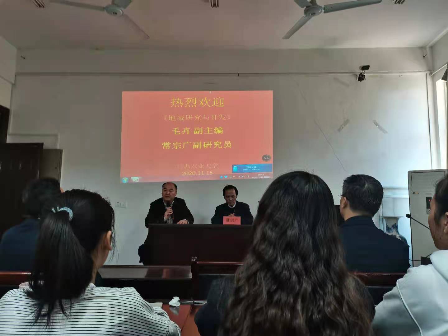 11月15日上午,《地域研究与开发》副主编毛卉(副研究员)、编辑常宗广博士于国土院办209会议室做了题为《科技论文写作及常见问题分析》及《论文写作应执行的相关标准与规范》的学术报告。报告由我院周春火副院长主持,国土院 100多师生参加了报告会。