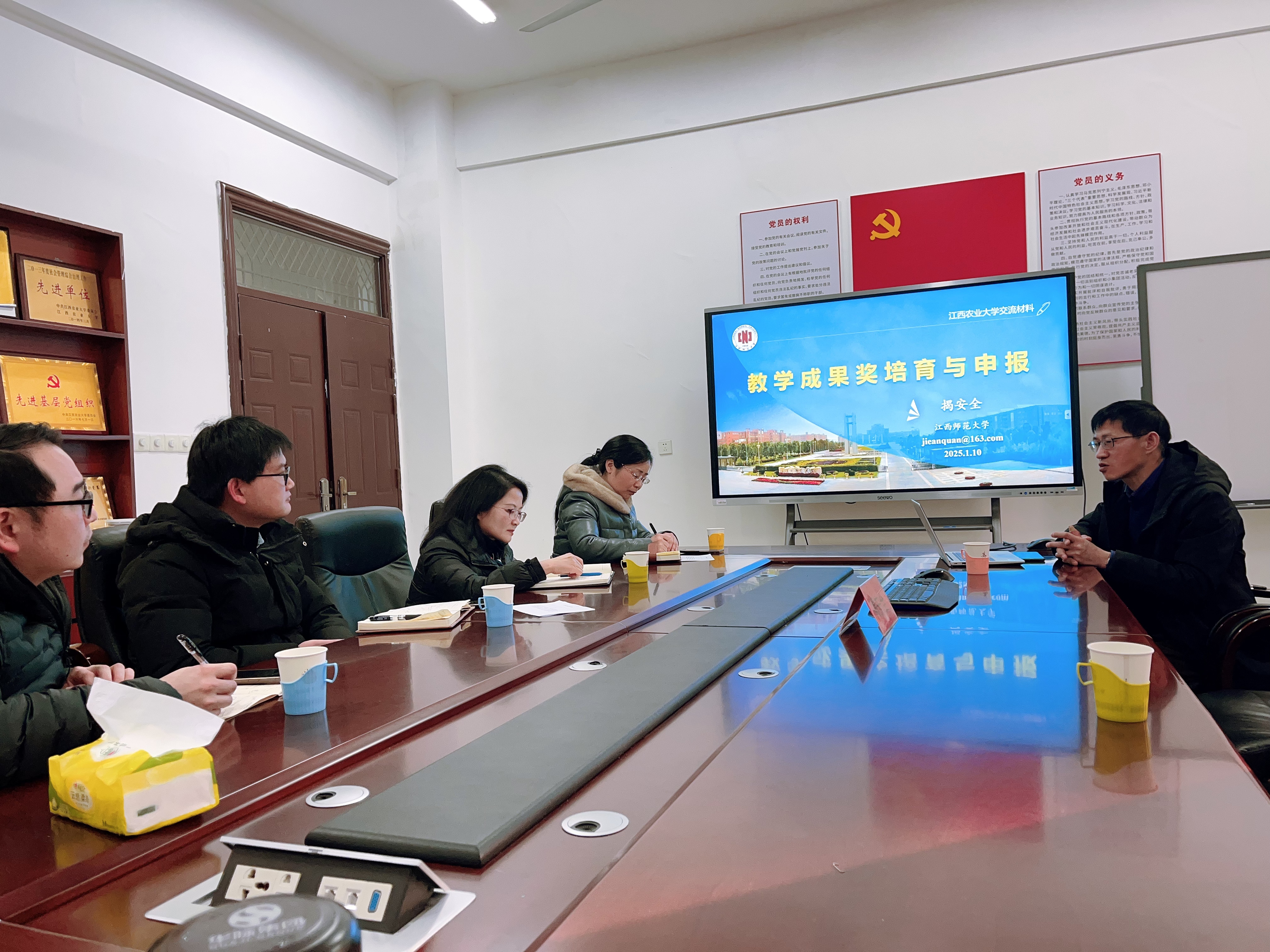 1月10日下午2:30,学院教学成果奖凝练与申报指导交流会在203会议室召开,会议邀请了江西师范大学揭安全教授到院指导,由副院长黄华军教授主持,各系专业教师参加此次交流。