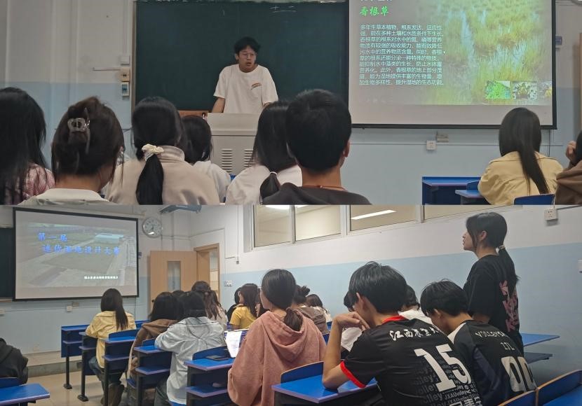 为了帮助参赛队伍更好地完成设计实践,415日,学校组织了大赛专项培训。培训期间,讲解员深入浅出地阐述了湿地设计的基础知识,内容丰富实用,台上学长认真讲解,参赛选手们全神贯注,认真听讲。419日,学校为参赛队伍分发了工兵铲、布水管、格挡板等工具,并开展设计场地的清理工作。参赛选手们干劲十足,持续工作至夜幕降临。