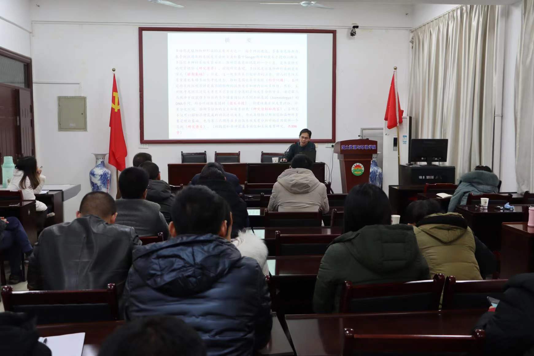1月14日,农学院张志勇教授应邀到我院交流国家基金申报经验,并对我院青年教师科研项目申报书的写作提供指导。我院青年教师参加了报告会,党委副书记马慧琴主持报告会。