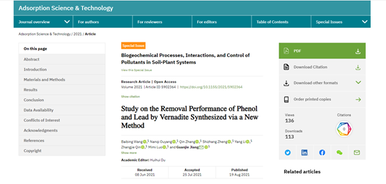 近日,我院张嵚老师课题组的2019级资源利用与植物保护研究生王白冰在《Adsorption Science & Technology》(SCI 2020 IF = 4.232)上发表研究性论文一篇,主要对水羟锰矿的合成方法及其理化性质进行初步探索。
