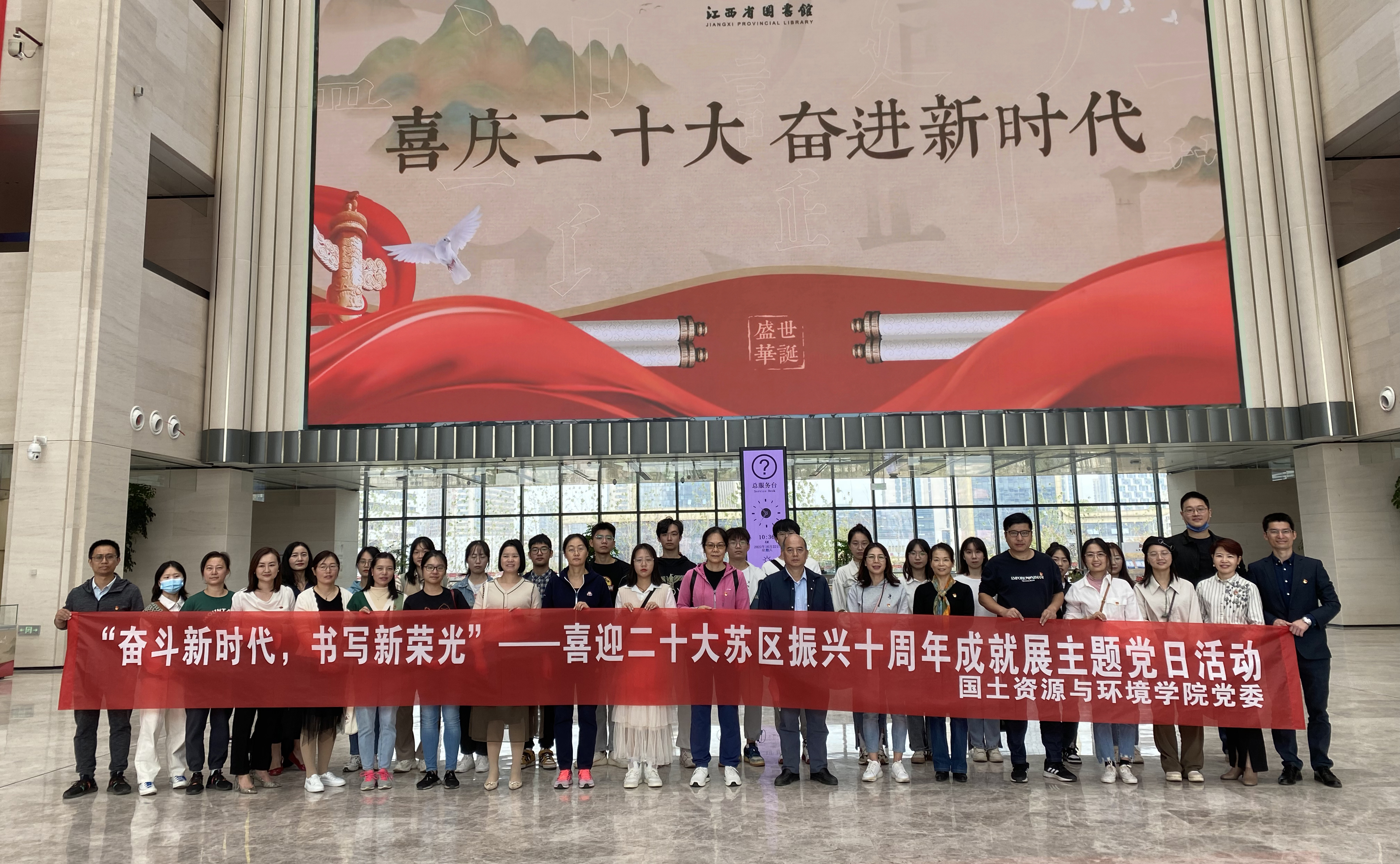 为庆祝党的二十大胜利召开,大力营造团结奋进、爱党爱国的浓厚氛围。10月22日上午,国土学院党委书记李保同、党委副书记马慧琴、各支部书记、教师党员代表、学生党员代表、入党积极分子代表前往省图书馆开展“奋斗新时代,书写新荣光”主题党日活动。