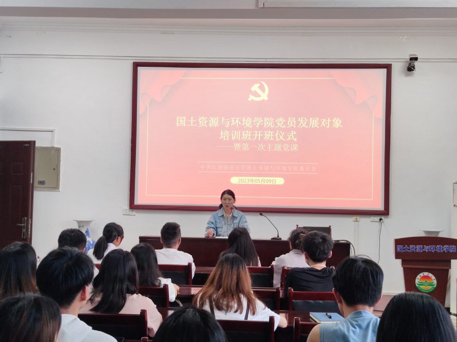 2023年5月9日,bat365中文官方网站党委举办了2023年上半年发展对象培训班开班仪式暨第一次主题党课。党委书记李保同、组织员刘志鑫以及本次培训班的全体发展对象参加。