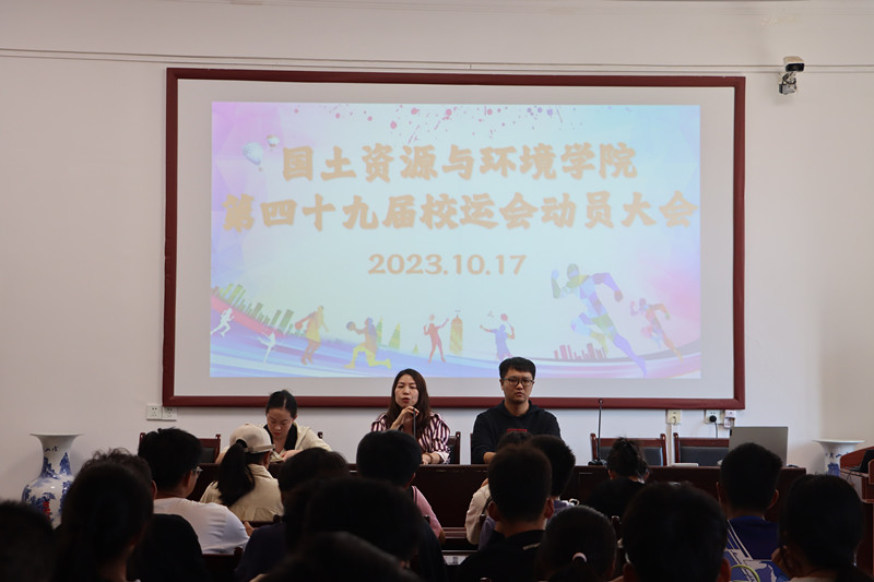 1017日,国土学举办49届校运会动员大会学院党委副书记马慧琴,团委副书记陈蕾赵晨刚出席会议,团委学生会各部门负责人及参赛运动员代表共六十余人参会会由赵晨刚主持。