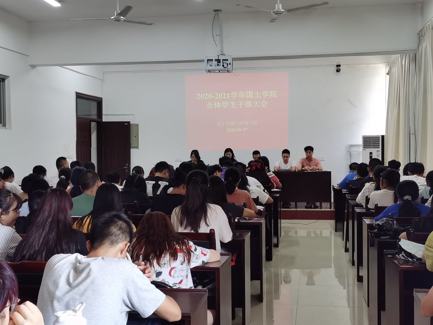 9月7日中午,我院2020-2021学年全体学生干部大会在院办209会议室召开。院学工办办公室主任张勇、院团委副书记江仔媛、院学工办肖晓峰、李子琳、陈寅聪及全院研究生、本科生主要学生干部参加会议。