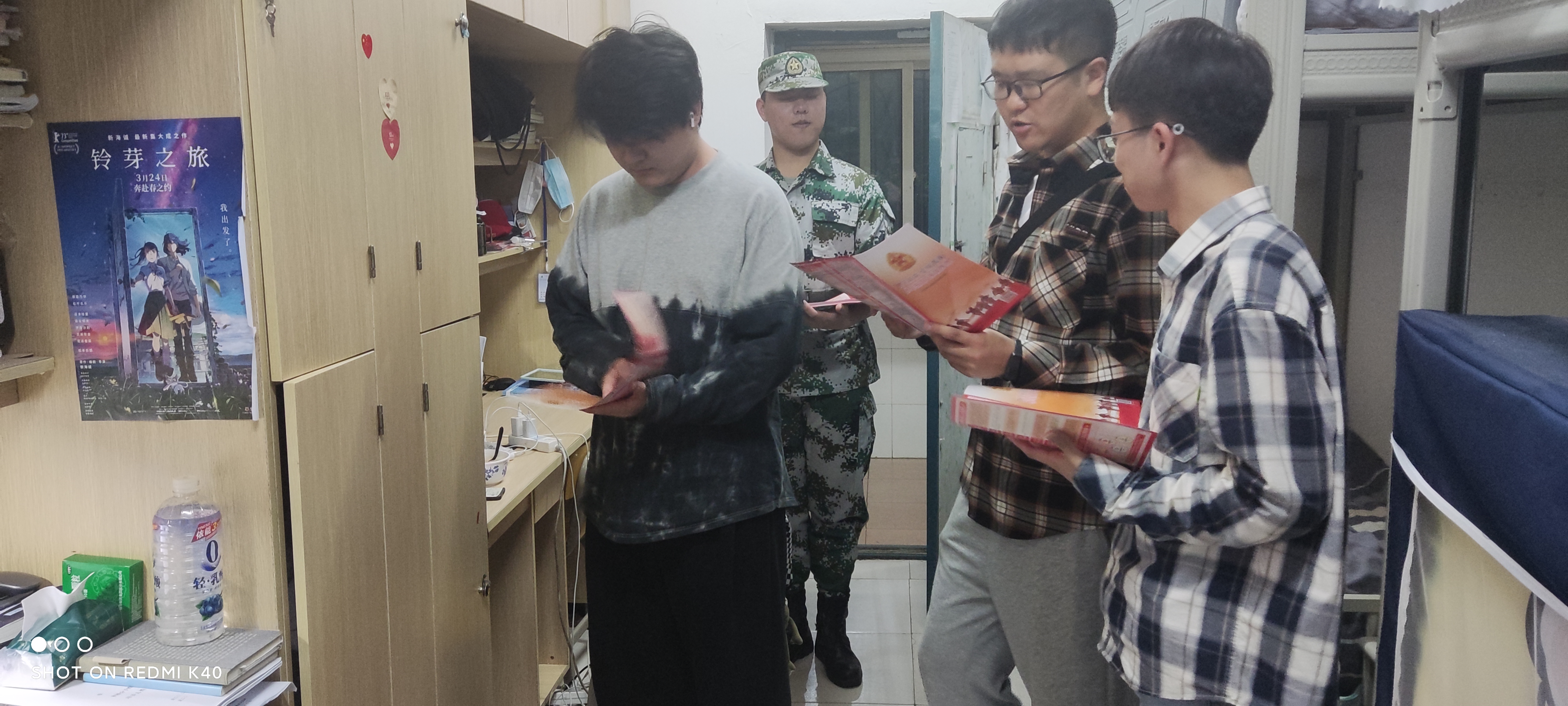 为积极响应国家号召,扎实推进2023年秋季征兵工作,增强适龄青年的国防意识, 59日、11日晚,国土学院教官队在学院团委副书记赵晨刚老师的带领下开展“携笔从戎,绽放青春;参军报国,铸就辉煌”为主题的征兵宣传活动。