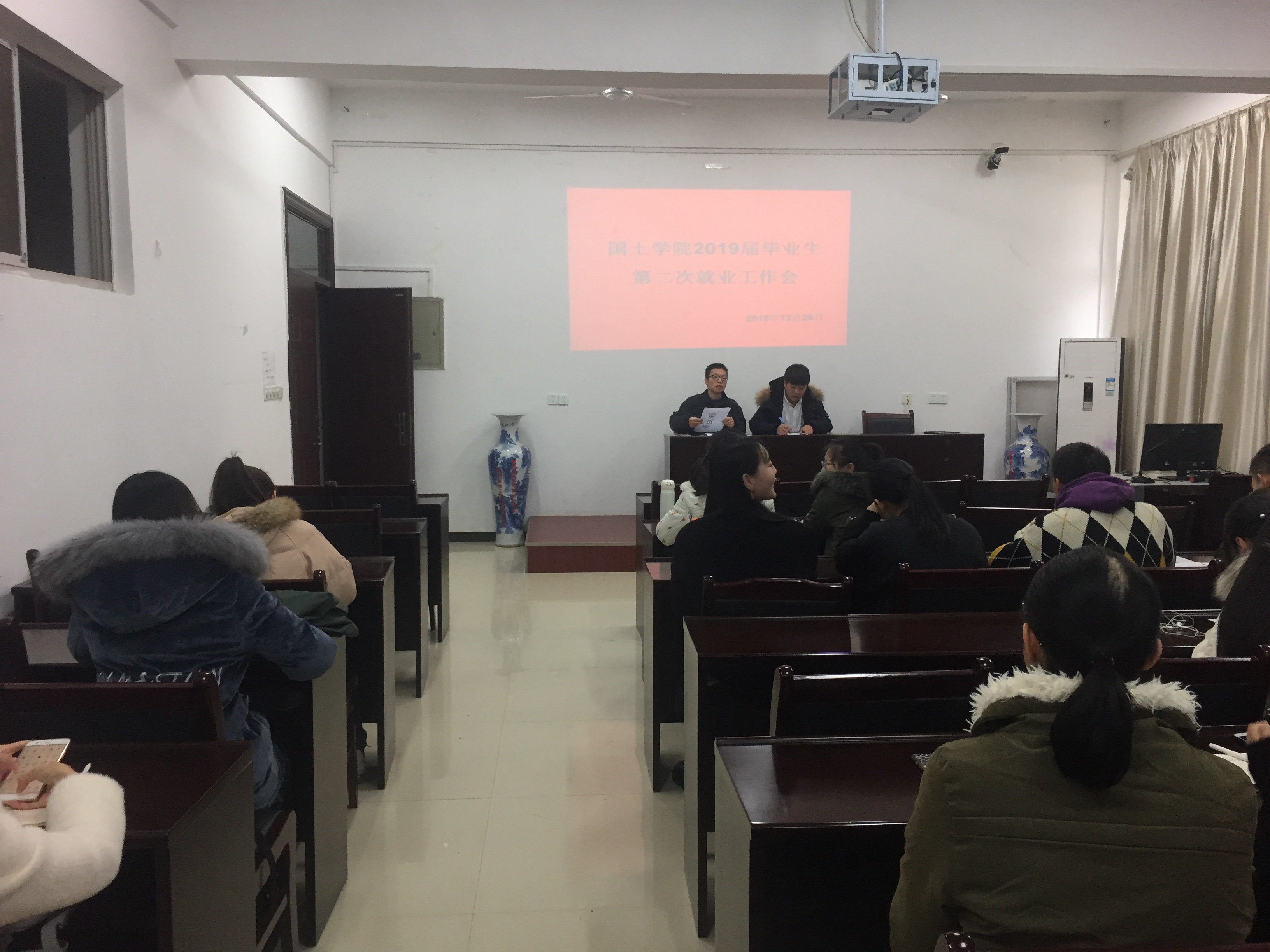 12月26日,我院在考研结束之际召开2019届毕业生第二次就业工作会议。就业工作负责人谢嗣荣、张勇及毕业班党员、班级主要班干和保研同学参加会议。