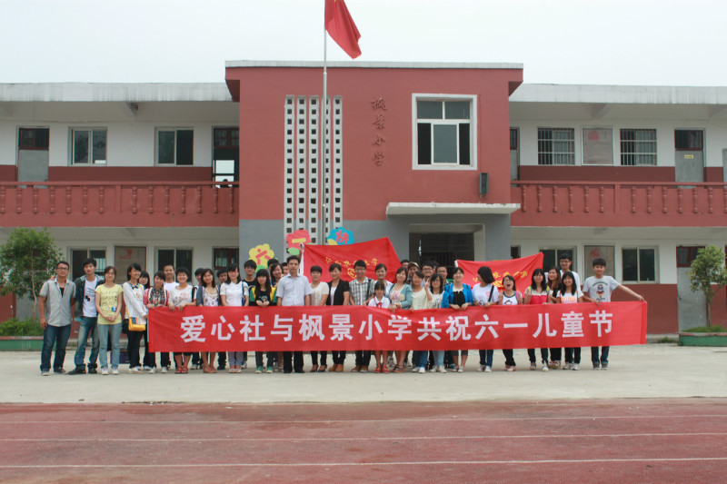 校明星社团爱心社社团于5月31日上午8点在枫景小学与全校师生欢度六一,进行文艺汇演。枫景村村主任孙主任、枫景小学校长、枫景小学全体师生和爱心社阳光支教队全体支教队员参与其中。