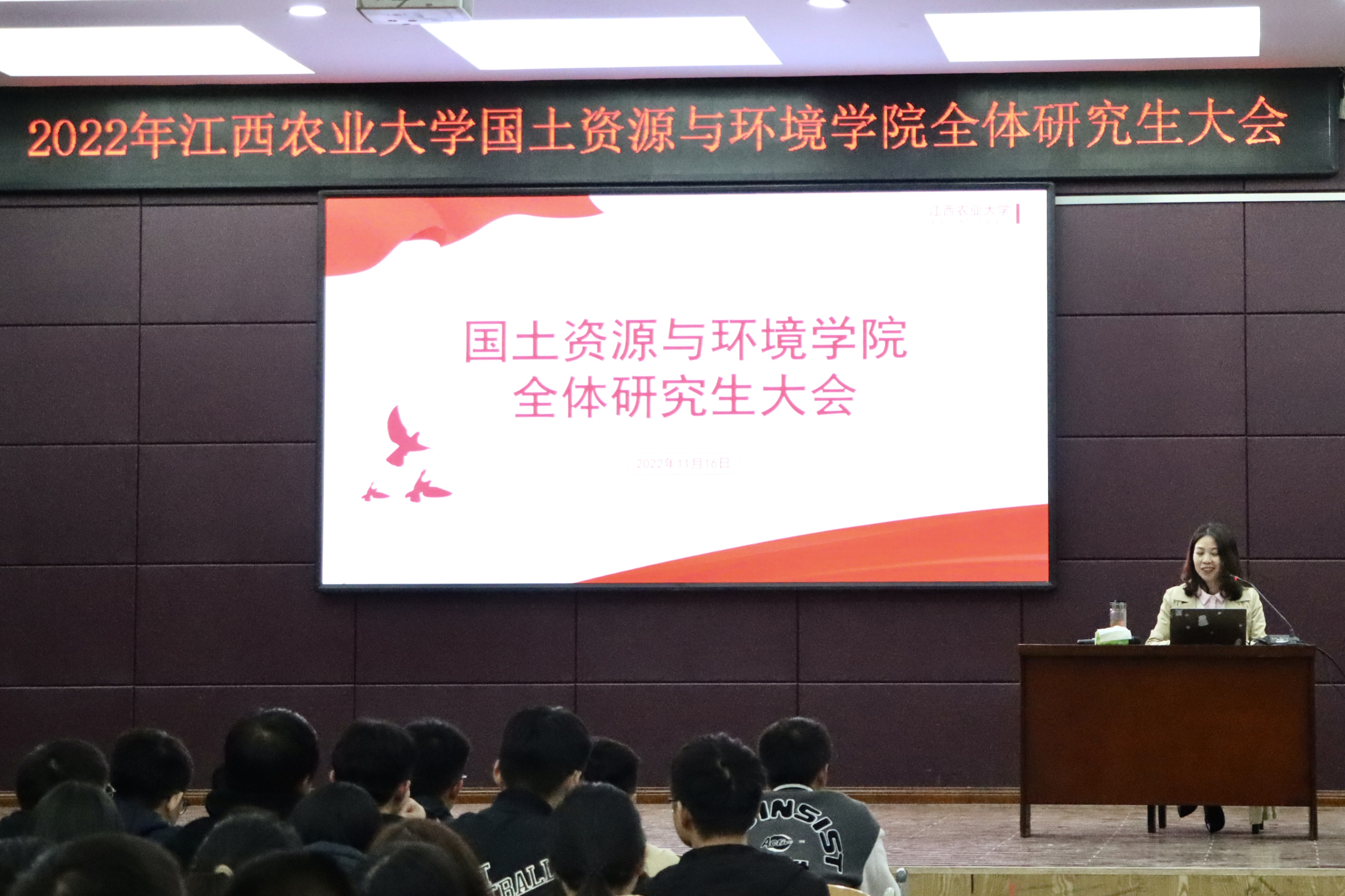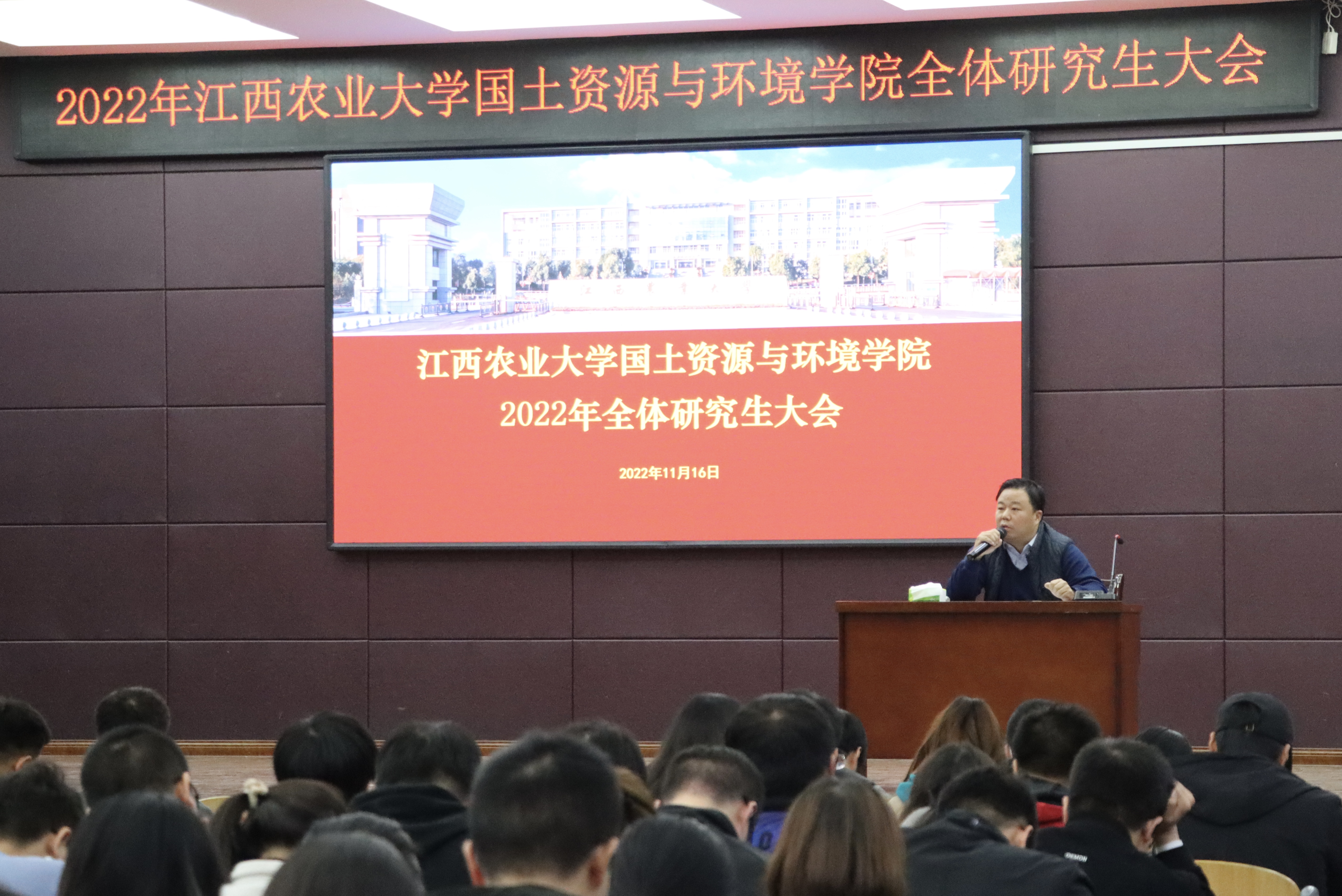 为进一步加强研究生思想政治教育、规范研究生日常管理及强化研究生法律意识,11月16日晚七点,bat365中文官方网站2022年全体研究生大会在大学生活动中心501顺利召开。出席本次会议的有院党委副书记马慧琴、副院长张嵚、学院分管研究生工作老师陈寅聪。国土院全体在校研究生共255人参加会议。