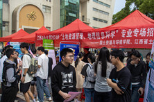 江西省土地学会秘书长刘翔、校招就处负责人左辉群、学院党委书记李保同、bat365中文官方网站农村土地资源利用与保护研究中心主任陈美球、江西省鄱阳湖流域农业资源与生态重点实验室执行主任郭熙、党委副书记等马慧琴、副院长黄华军、土地资源管理系系主任黄宏胜、副主任赵丽红以及土管系周丙娟、钟海燕、朱泰峰、郭细根等老师人走进招聘会现场指导工作,详细了解就业及人才需求情况。会后,相关领导、老师前往学院召开专业座谈会。