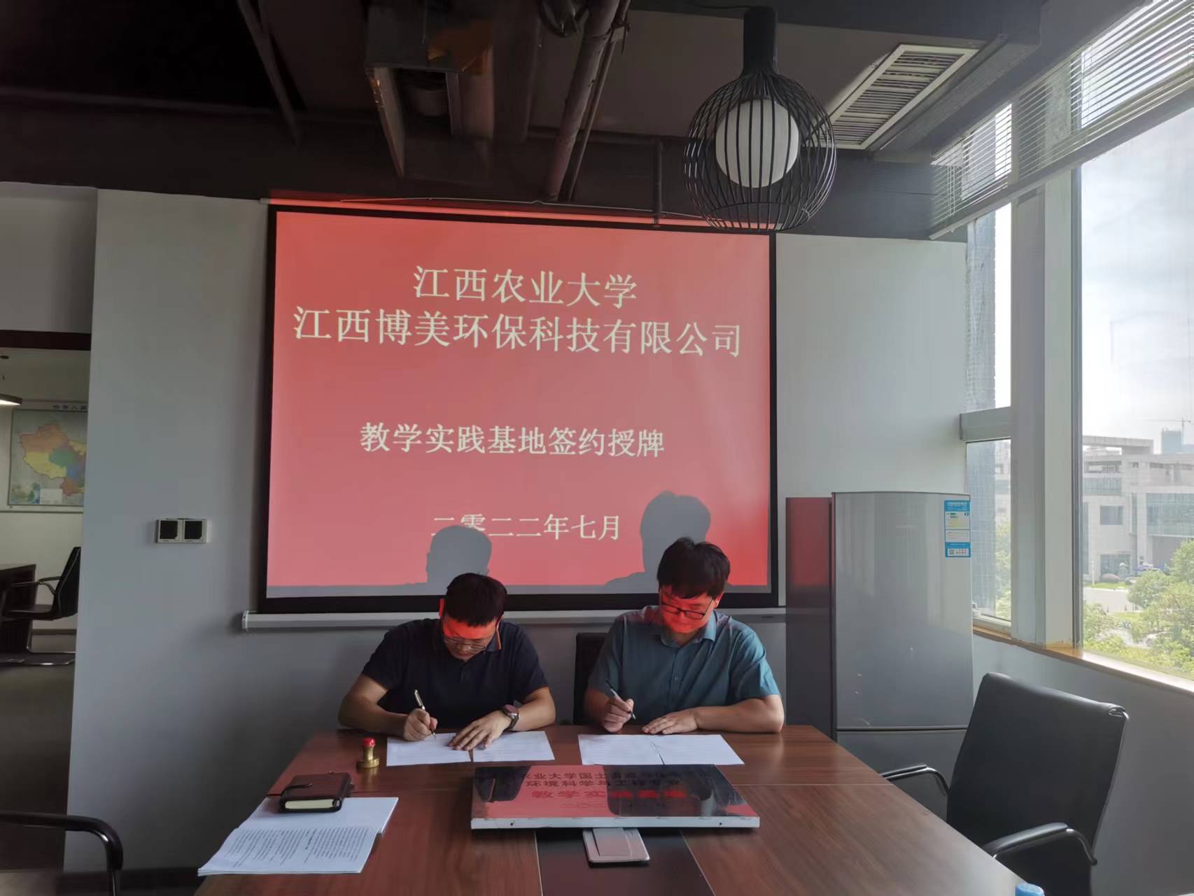 座谈会上江西博美环保科技有限公司负责人、校友邓国鹏详细介绍了公司的发展历程、运营领域、公司业务、人才招聘等情况。双方针对人才培养、学生实习就业、创新创业教育、企业奖学金等方面做了深入交流。现场还举行了教学实践基地的签约和授牌仪式,就学生参访和实践达成初步意向。