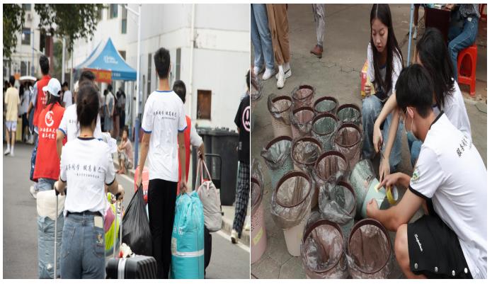 为了给新生打造一个舒适整洁的宿舍环境,开学报前夕,辅导员老师带领学生干部进新生寝室一一排查寝室问题,在了解到女生宿舍公共卫生间缺少垃圾桶的情况后,统一购买30余个垃圾桶放置在学院19栋和20栋女寝1层、3-6层的公用卫生间,改善新生住宿内部环境。同时学院也组建了一支由学生干部、党员、高年级同学共100余人的迎新志愿服务队。志愿者们分布在校门口、行李转运点、新生报到点、宿舍等区域,一对一、点对点提供新生咨询、新生报到、引领入住寝室和搬运行李、寝室卫生打扫等服务。周到热情的服务增加了新生们的归属感,引导他们尽快融入国土大家庭。
