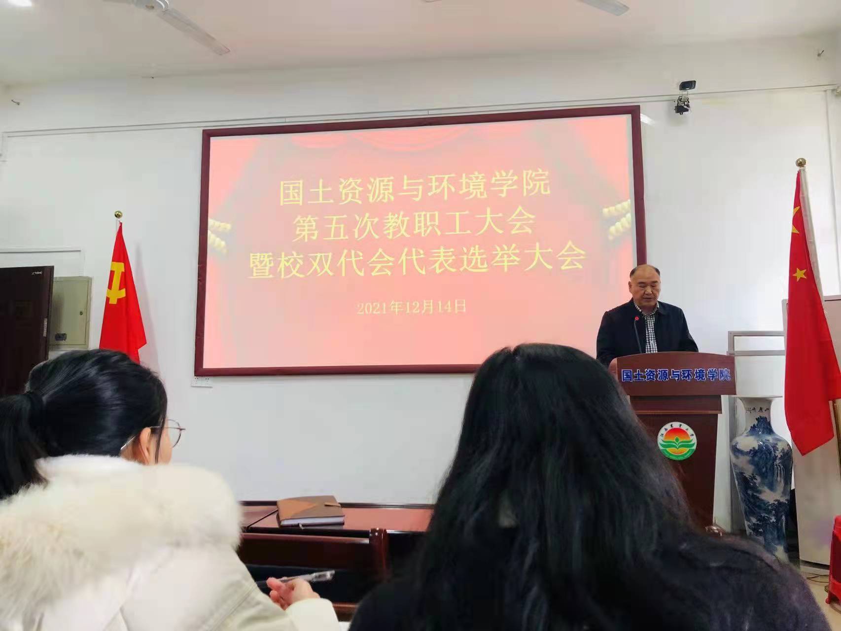 12月14日下午,我院在院办209召开了国土学院第五次教职工大会暨校双代会代表选举大会,学院领导班子出席。会议由院党委副书记马慧琴主持。