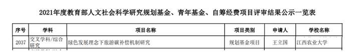 同时,我院王立国老师在2021年度教育部人文社会科学研究规划基金评审中获得1项规划基金项目。