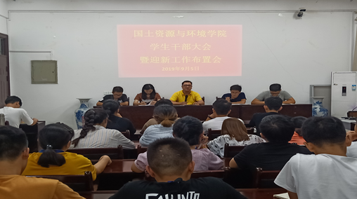 9月5日,我院在院办会议室召开学生干部大会暨2019级迎新工作布置会,出席本次会议的有:院党委副书记赵刚,院团委副书记江仔媛,学工办张勇老师、向文武老师、刘志鑫老师,第二十三届团委学生会全体委员以及2019级各新生班级辅导员。