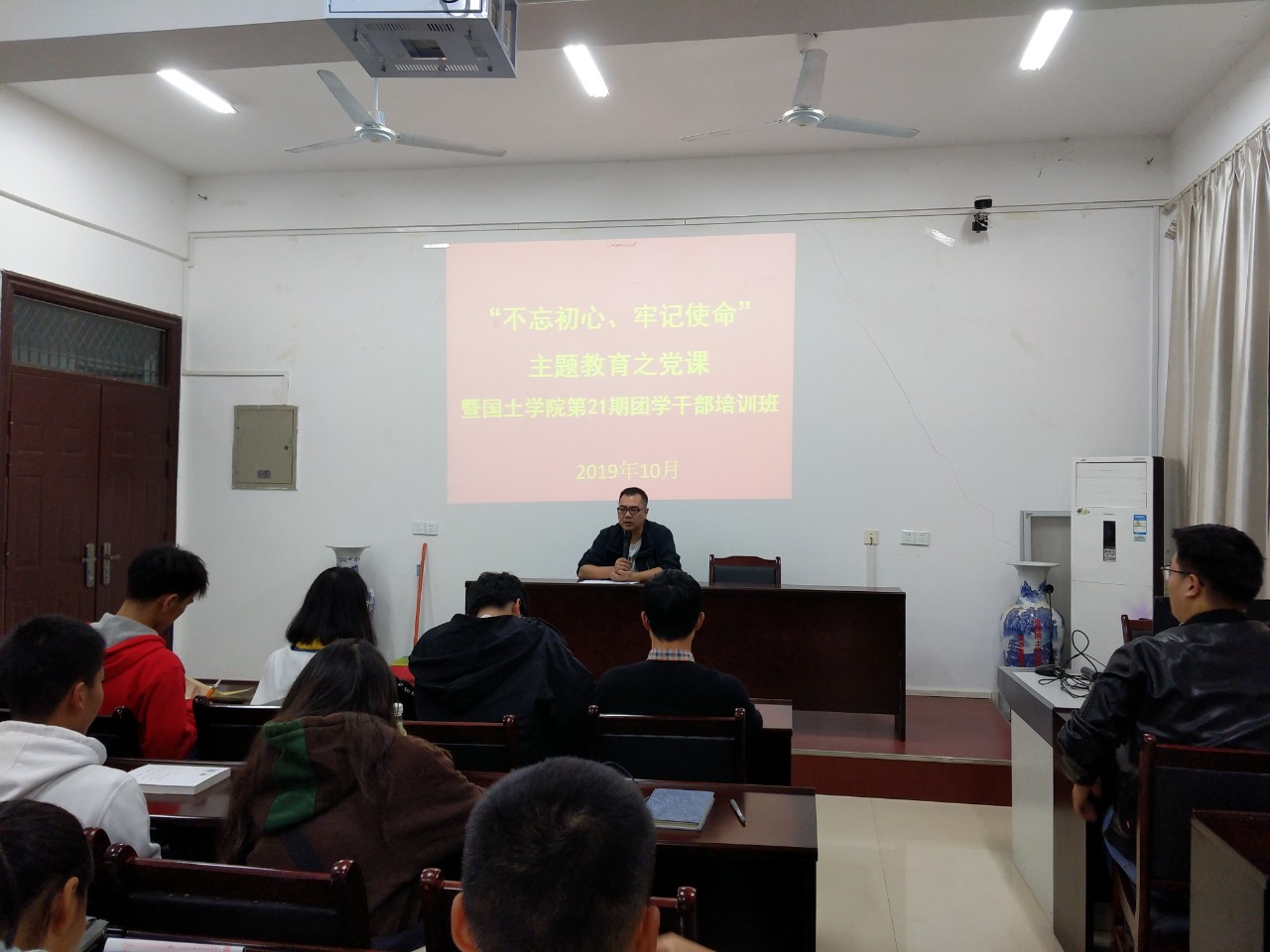 为进一步提高学生干部的自我修养,培养强农兴农的教育型人才,我院团委于10月28日开始进行了为期一周的团干培训。本次课程由郭旭书记、赵刚副书记、江仔媛老师、张勇老师、向文武老师担任主讲人。课程围绕“不忘初心、牢记使命”的主题展开,以党的教育方针为背景,以教育的本质为主线,并结老师们多年学生工作的心得体会对参加培训的学生干部们进行分享交流。