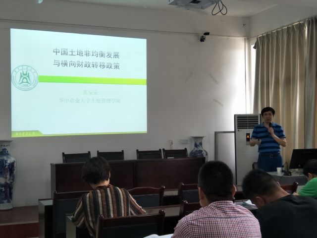 529日上午,受国土学院、MPA教育中心、鄱阳湖流域农业资源与生态重点实验室的邀请,华中农业大学公共管理学院院长、教授、博士生导师张安录先生,作题为“中国土地非均衡发展与横向财政转移政策”的学术报告。MPA中心主任陈美球教授主持报告会。学院教师、研究生和本科生共60余人参加并聆听了报告。