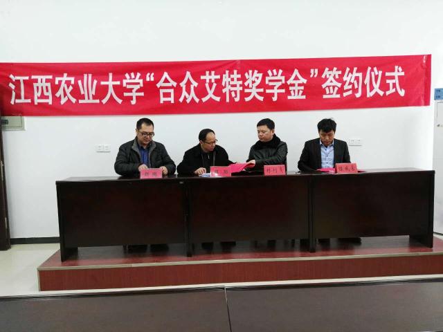2017年3月13日,经过前期的沟通协商,学院与深圳合众艾特信息技术有限公司签订了“合众艾特奖学金”设立与评选协议书。学院党委书记郭旭同志、深圳合众艾特信息技术有限公司总经理林列亮、学院党委副书记赵刚一起出席了签字仪式。
