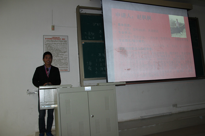 答辩伊始,在黄书记的带领下,全体人员起立,为在4月20日四川省雅安市地震遇难同胞与抢险救灾中英勇牺牲的战士默哀。接下来,谭老师就“思源”奖学金与“夏氏春秋”奖学金评选标准、相关要求及参评学生名单作了简要说明,他希望大家能以对设奖单位、参评同学负责的态度,本着公平公正精神认真评选。共有14名同学参加“思源”奖学金、15名同学参加“夏氏春秋”奖学金答辩。各位申请人按抽签决定的顺序依次上台进行答辩,在规定的3分钟时间内,他们用简明扼要的语言,就大学期间的学习、生活、学生工作等各方面情况进行阐述。答辩会前后共用了将近4个小时时间。