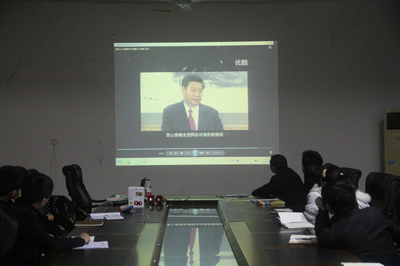 讯(李晶晶)3月24日晚7时,为学习宣传贯彻党的十八大精神深入开展中国特色社会主义宣传教育,我院学生党总支和团委组织各班级团支书及全体学生党员在院办会议室观看了《党的十八大精神学习专题片·大学篇》。我院党委副书记黄新志和团委书记郭细根出席了本次活动。