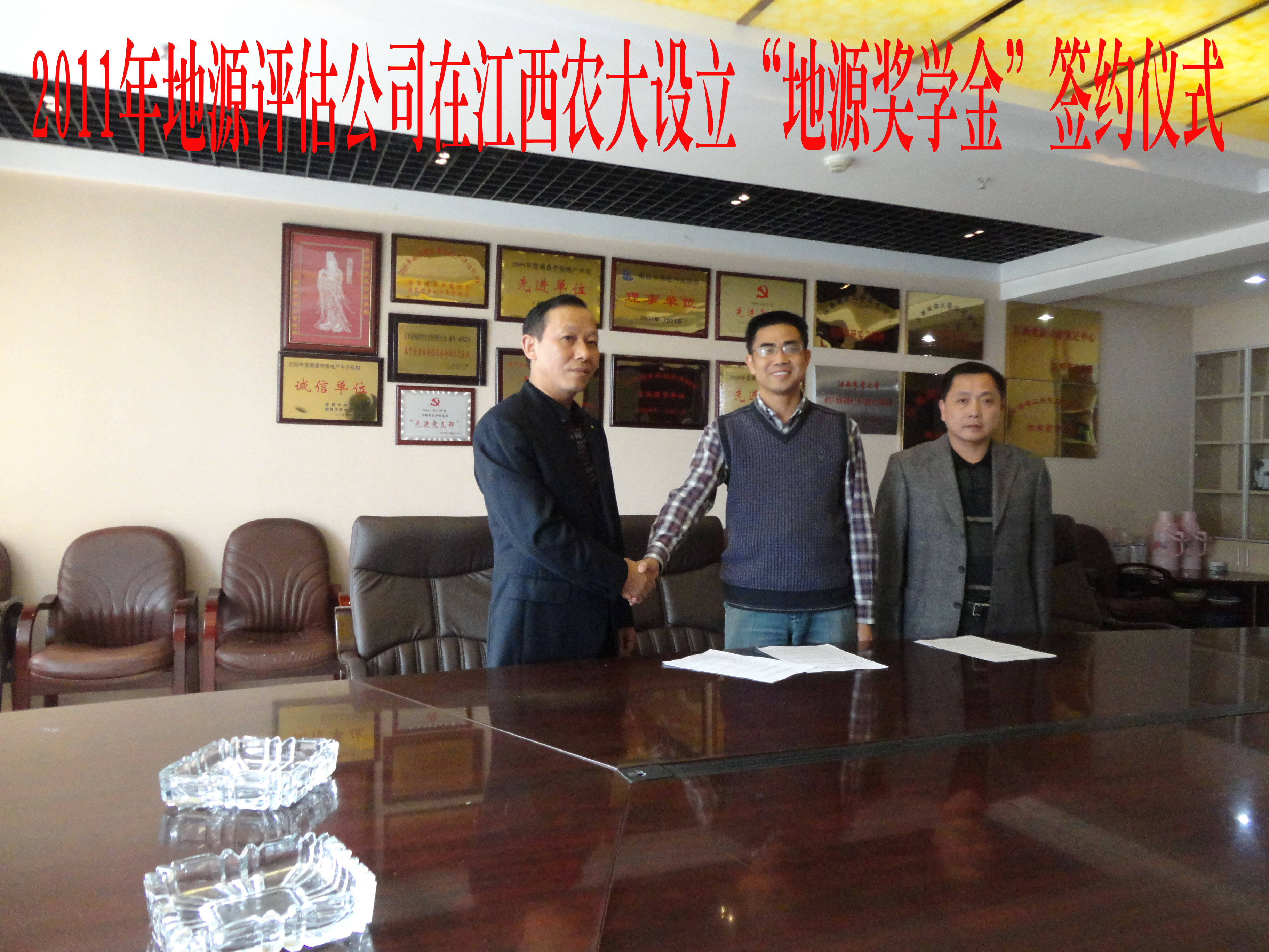 (本报讯)2011年11月16日上午,我校bat365中文官方网站陈美球院长与江西省地源评估咨询有限责任公司蒋总裁在地源公司总部续签《关于江西省地源评估咨询有限责任公司在bat365中文官方网站设立“地源奖学金”的协议书》。按协议书规定,从2011—2015年由地源评估公司每年出资壹万元奖励十名品学兼优的国土学院在校本科学生,每人奖金壹千元,每年评选一次。