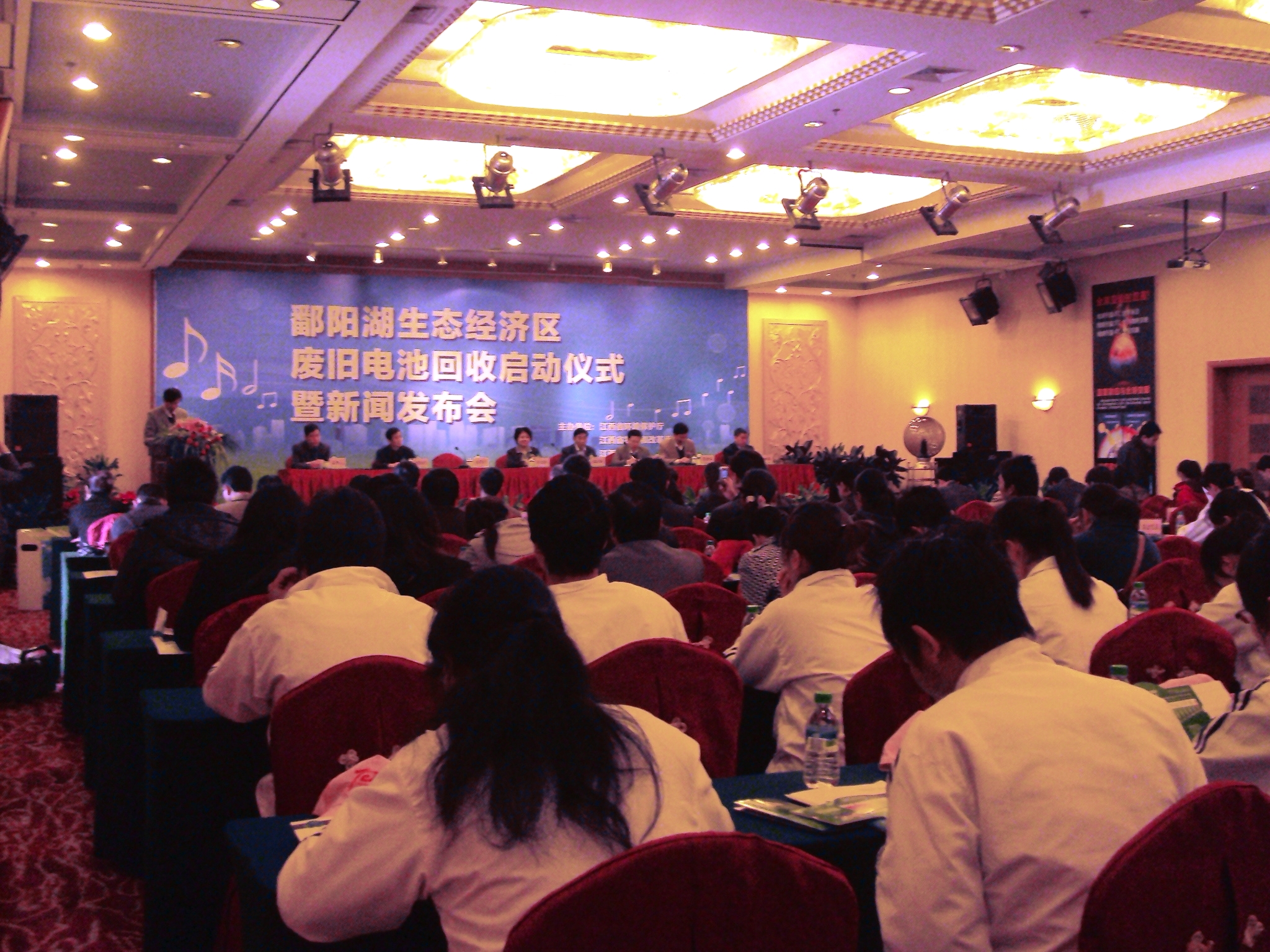 为进一步加快鄱阳湖生态经济区生态文明建设的步伐,提高市民和高校大学生的环保意识,减少废旧电池带来的环境污染。11月25日,江西省人大环资委、江西省环保厅、江西省发改委、江西省商务厅、共青团江西省委、江西格林美资源循环有限公司联合举行鄱阳湖生态经济区废旧电池启动仪式暨新闻发布会。我校绿源协会及国土学院青年志愿者80余名同学应邀作为环保青年志愿者代表参加了此次活动。