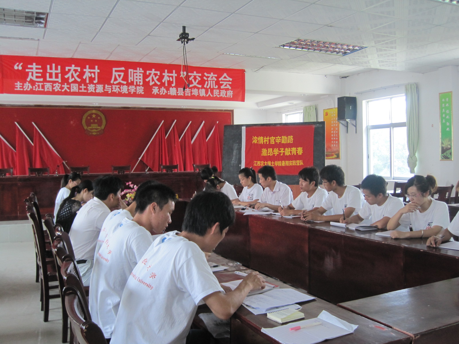 7月14日19日,我院党团干部一行15人深入赣县吉埠镇农村,开展了主题为“浓情村官辛勤路,激昂学子献青春”的大学生村官调查社会实践活动。