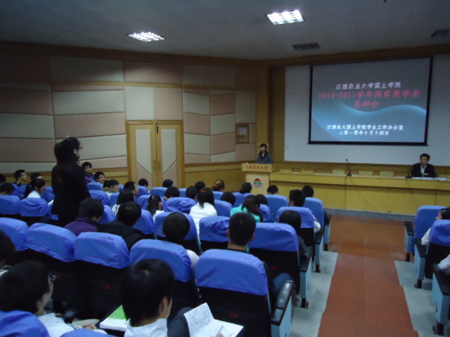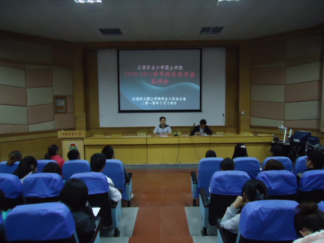 10月14日晚,科技馆报告厅里座无虚席,国土学院2010—2011学年国家奖学金答辩会在这里隆重举行。国家奖学金答辩会是我院在上一学年打破常规,在我校率先开展的国家奖学金评选程序。今年我院有2个国家奖学金名额,共吸引了10名来自07级、08级各个专业的佼佼者参与答辩,其中有4名07级和6名08级同学,男生2人,女生8人。10人中有6名党员,9人通过了国家英语六级,8人为曾任或现任主要学生干部。我院党委副书记蔡海生和学工办等老师担任答辩会的评委,大会由我院团委书记陈家兴主持。此外,共有200余名学生旁听了此次答辩会。