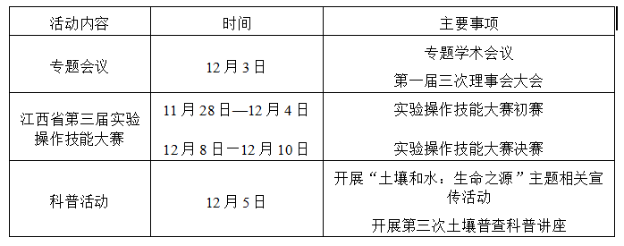 2023年12月5日是第十个世界土壤日,在世界土壤日框架下,江西省土壤科学技术学会将围绕“土壤和水:生命之源”的主题,在bat365中文官方网站、江西省农业科学院土壤肥料与资源环境研究所/江西省红壤研究所、中国科学院南京土壤研究所(中国科学院红壤生态实验站)、江西省地质调查研究院等单位开展系列活动。活动形式包括专题会议、实验操作技能大赛和科普活动,具体如下: